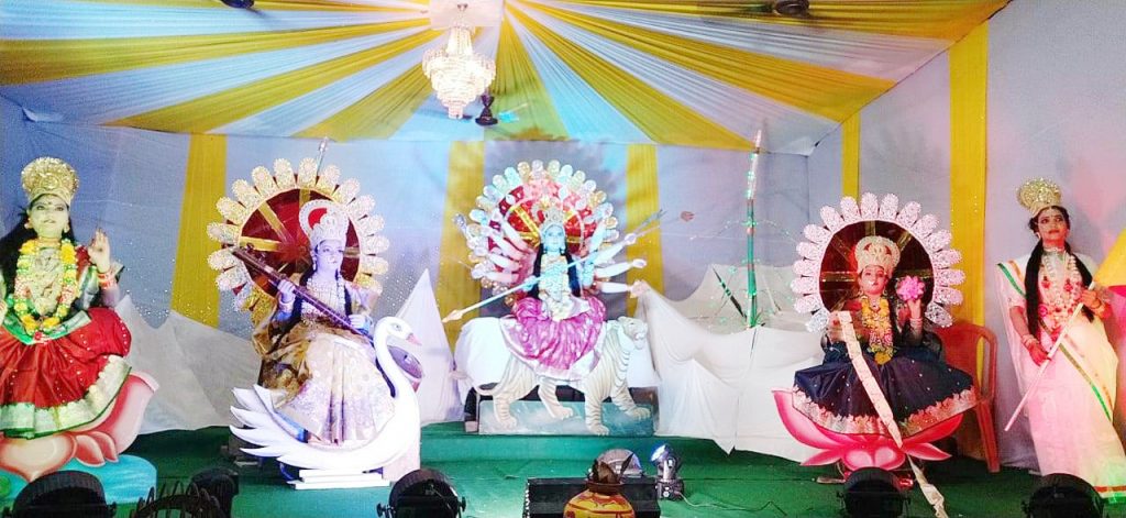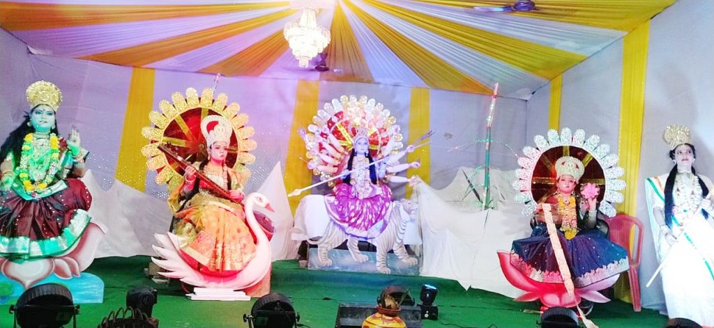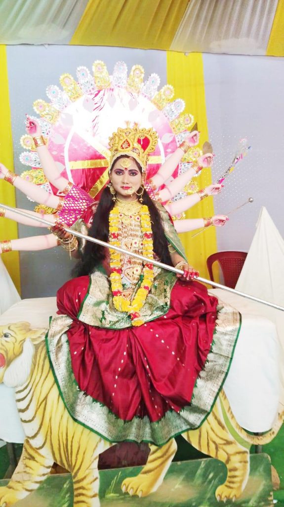 आरा, बिहार। विजयादशमी के दिन दुर्गापूजा के उपलक्ष में आयोजित चैतन्य देवियों की झांकी का भव्य समापन हुआ, रात्रि अंतिम शो के दौरान जब भोजपुरी संगीत ‘हमनी के छोड़ के नगरिया नू हो कहवा जइबू ए माई…’ बजा तो वहां उपस्थित सभी श्रद्धालु भाव विभोर हो उठे। तथा एक शो और एक और शो के स्वर गूंजने लगे रात्रि 1 बजे तक श्रद्धालुओं की भीड़ लगी रही। इस कार्यक्रम की शुरुआत अष्टमी के दिन आरा के डीएसपी श्री श्याम सुन्दर कश्यप के हस्तों से दीप जलाकर की गयी थी। कार्यक्रम में विशेष रूप से सेवाकेंद्र की संचलिका बी. के. किरण बहन, रूपा बहन, सूरज भाई, सुनील भाई, अजय भाई, आदि उपस्थित थे। चैतन्य देवियों में दुर्गा माँ के रूप में नूतन बहन, लक्ष्मी माता के रूप में साक्षी बहन, सरस्वती माता के रूप में शिखा बहन, संतोषी माता के रूप में पुतुल बहन, भारत माता के रूप में ममता बहन शामिल थी। कृष्णा भाई, विनय भाई, सिद्धार्थ भाई, रंजन भाई, राकेश भाई, हर्षित भाई आदि अथक सेवाधारी के रूप में उपस्थित रहे।